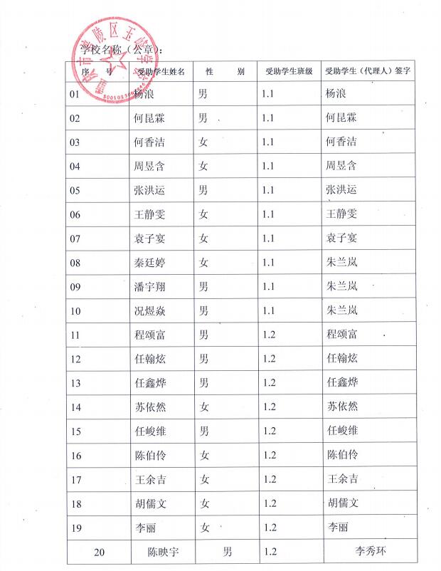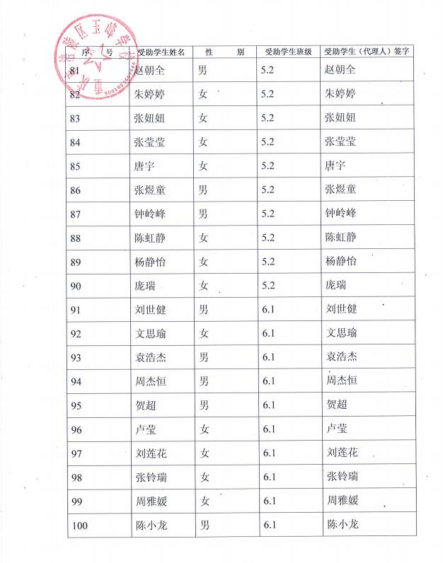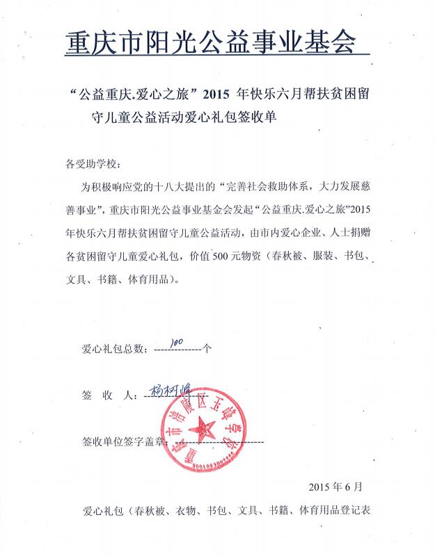 重庆市阳光公益事业基金会-重庆市涪陵玉峰学校物资发放公示